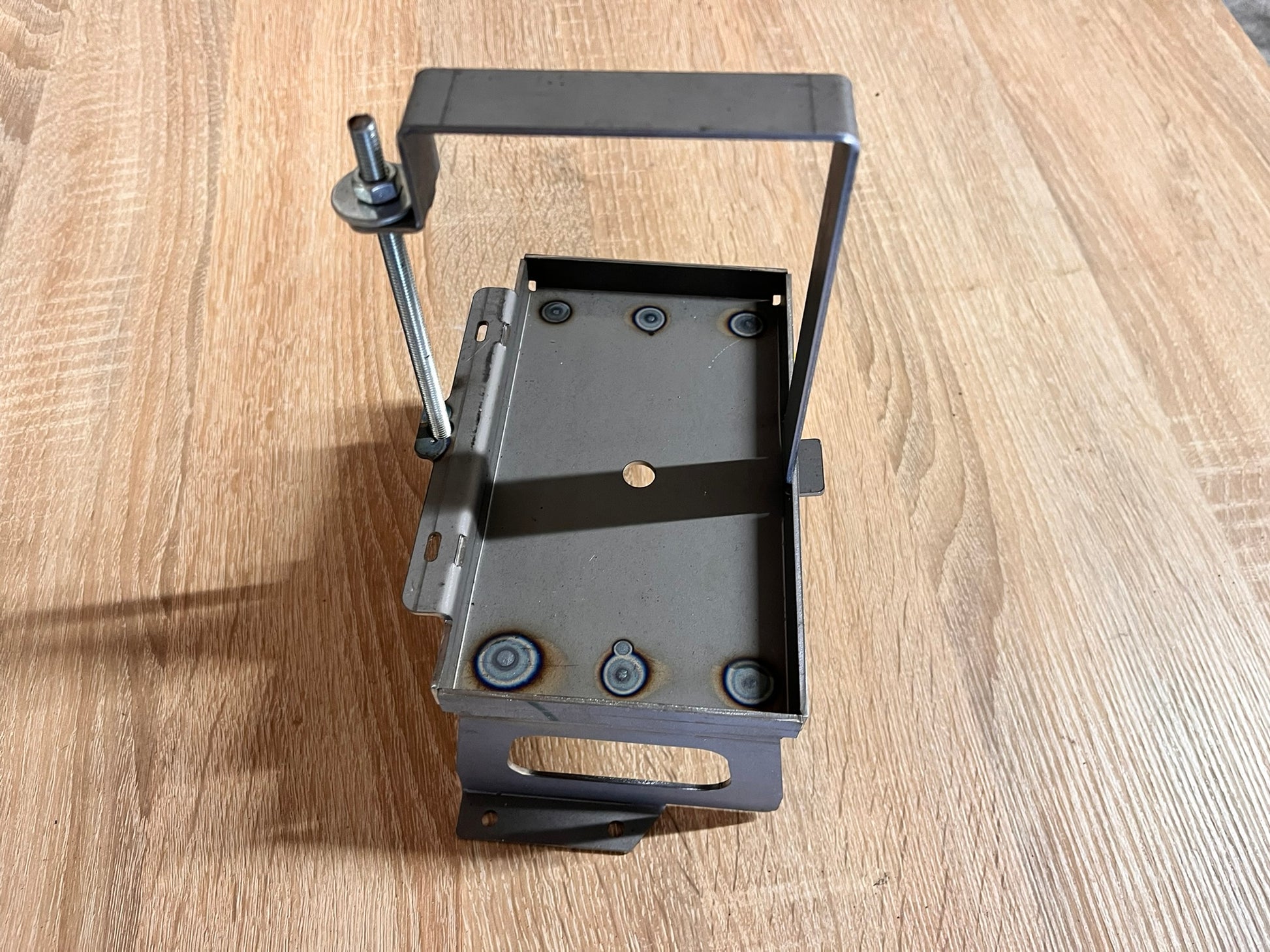 Im Lieferumfang ist noch ein Bügel mit passender Gewindestange um die Batterie fest zuklemmen.