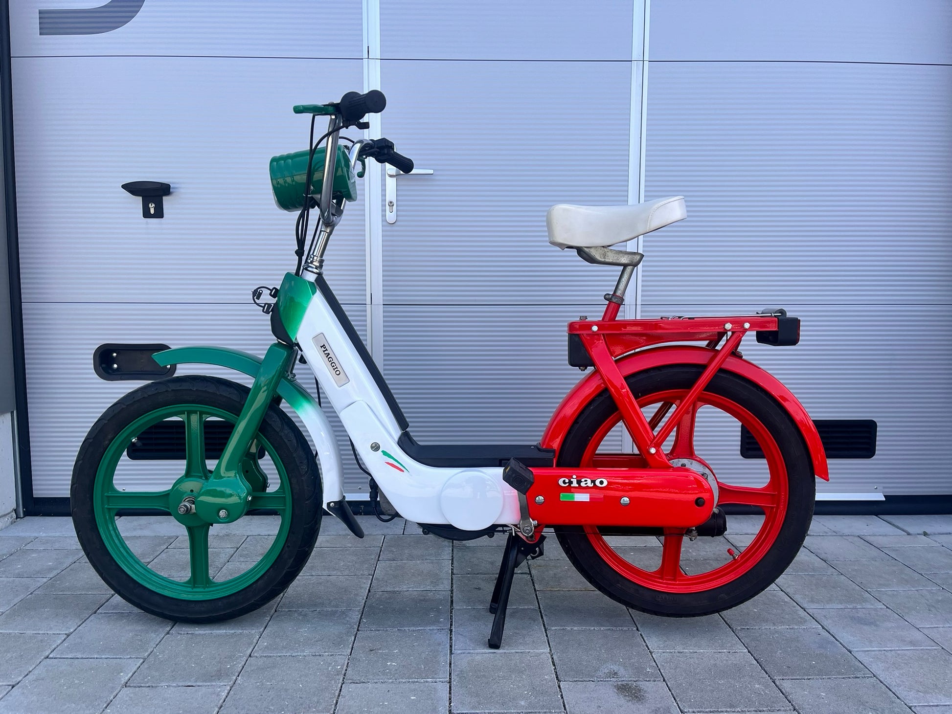 Hier eine tolle restauriert Piaggio Ciao. Die Lackierung ist dem original von Piaggio nach Empfunden.