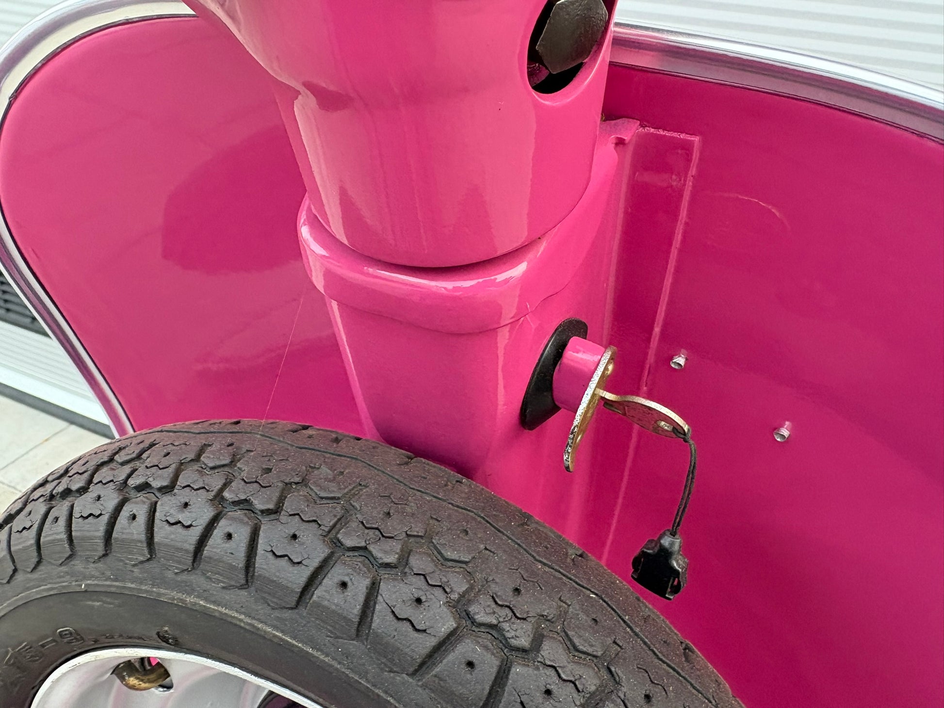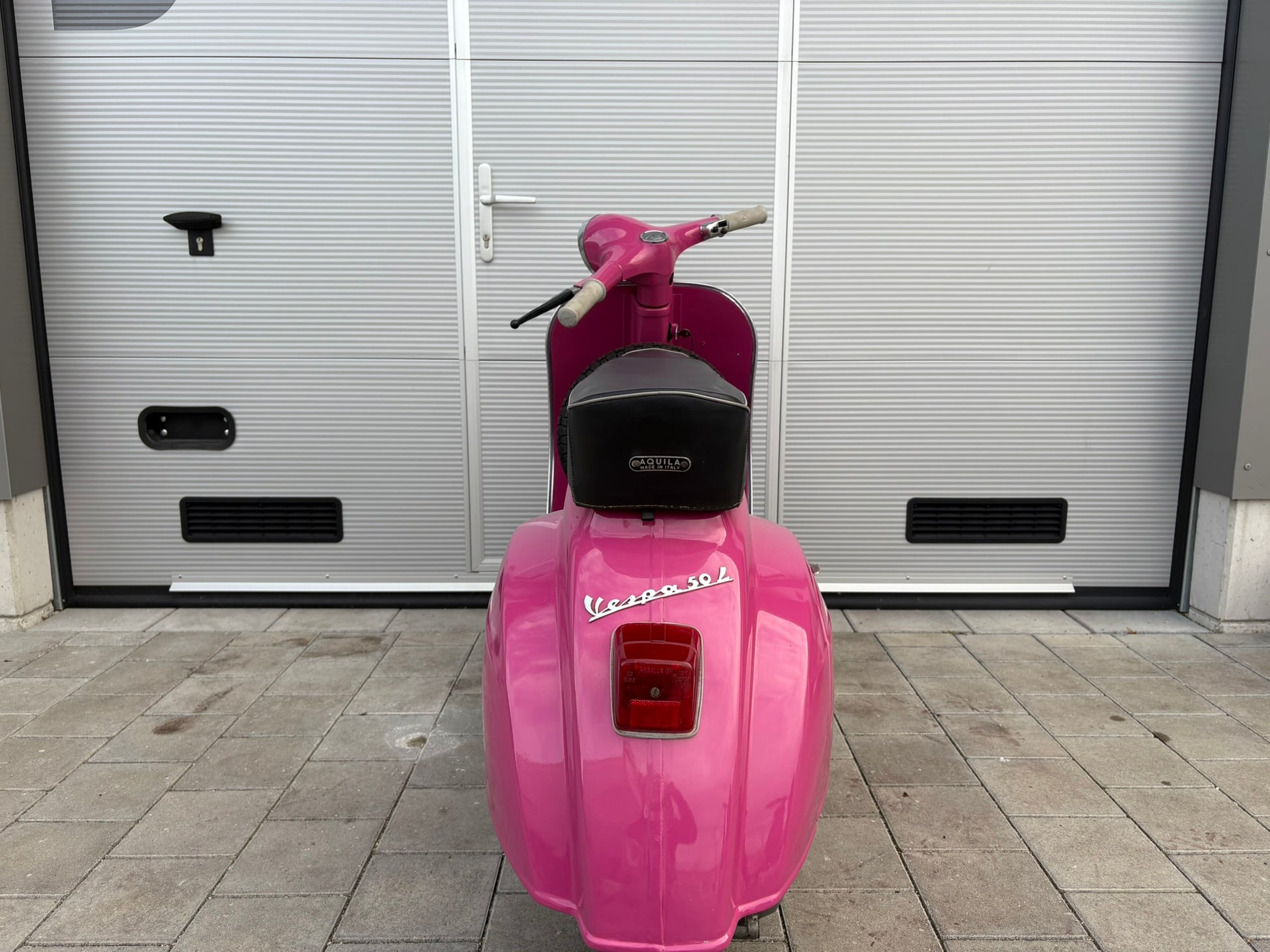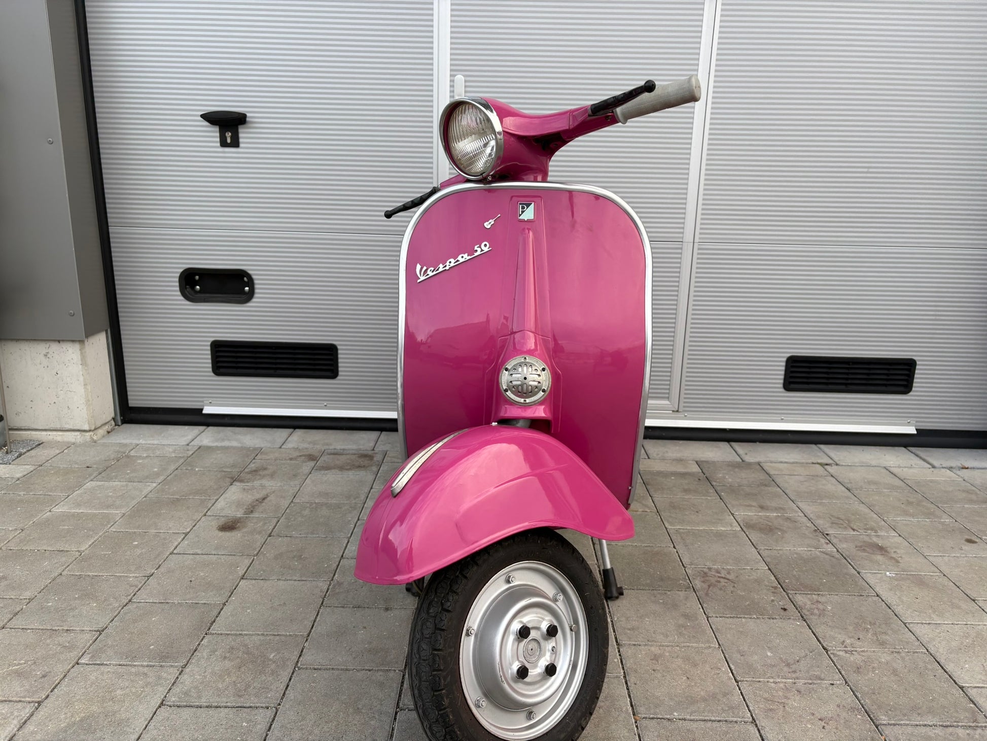 Hier eine wunderschöne Vespa V50 L, in der tollen Farbe „Shocking Rosa".